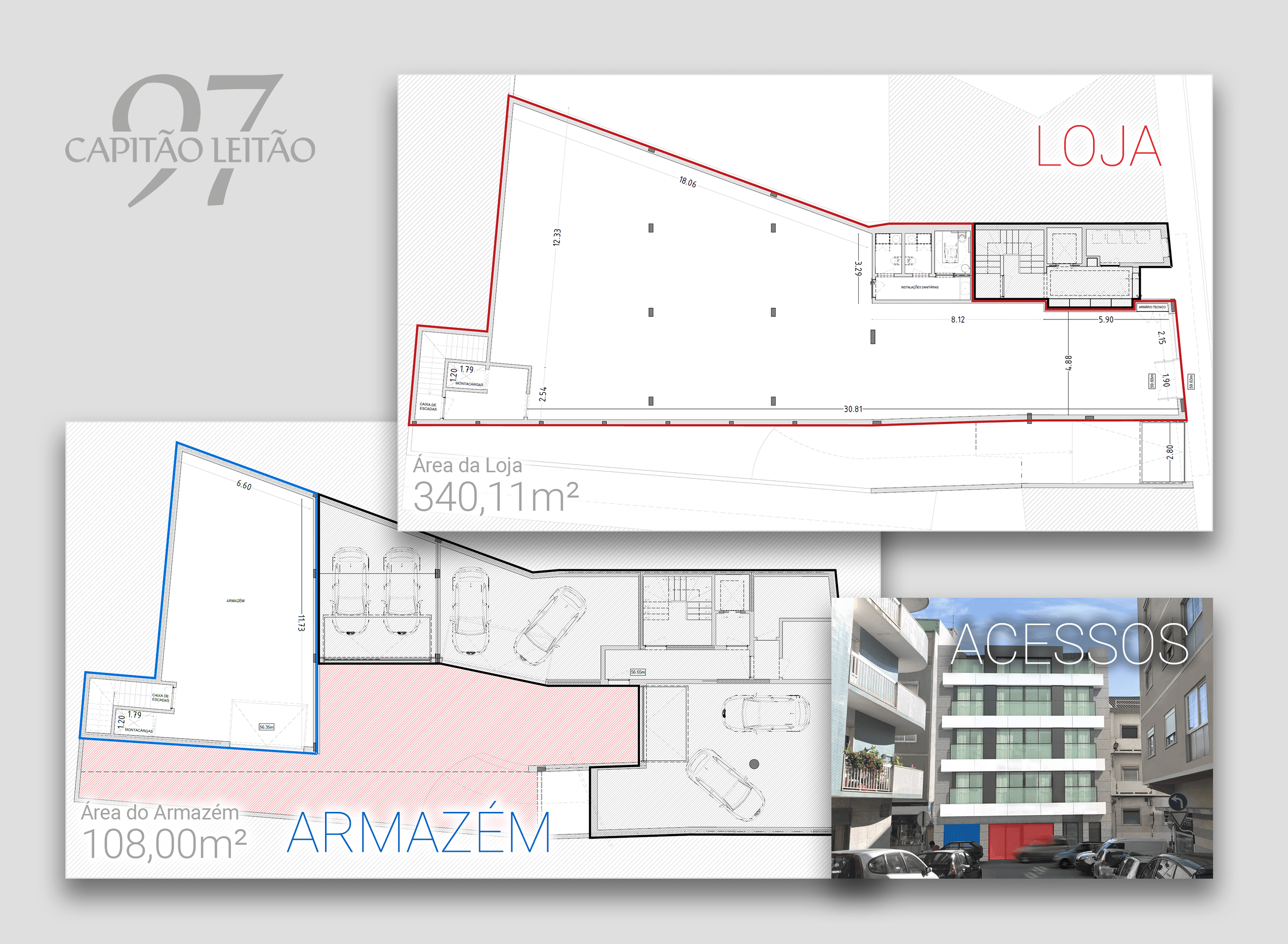 O Edifício Capitão Leitão 97 tem também espaço para uma loja. Ocupando uma área bruta combinada de 448,11m2, este espaço foi pensado e criado de raiz para receber o seu negócio de sucesso.